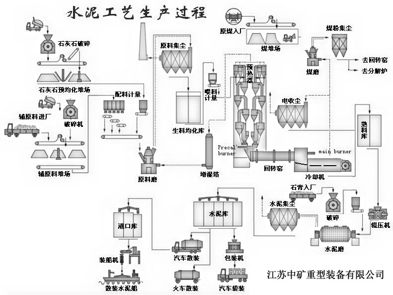 水泥生產設備隨生料制備方法不同,可分為干法水泥生產線(包括半干法)與濕法水泥生產線(包括半濕法)兩種。